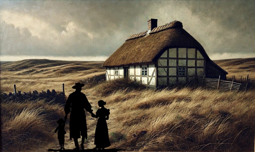 Abelone havde et stykke jord med et lille hus lige dér, hvor jordvejen slog et sving ved Pytmosen. Hendes søn stod sandsynligvis til at skulle arve huset og jorden, når han blev voksen. Om det var kærlighed eller en praktisk aftale, for vi aldrig at vide, men Ole giftede sig med Abelone og blev husmand.