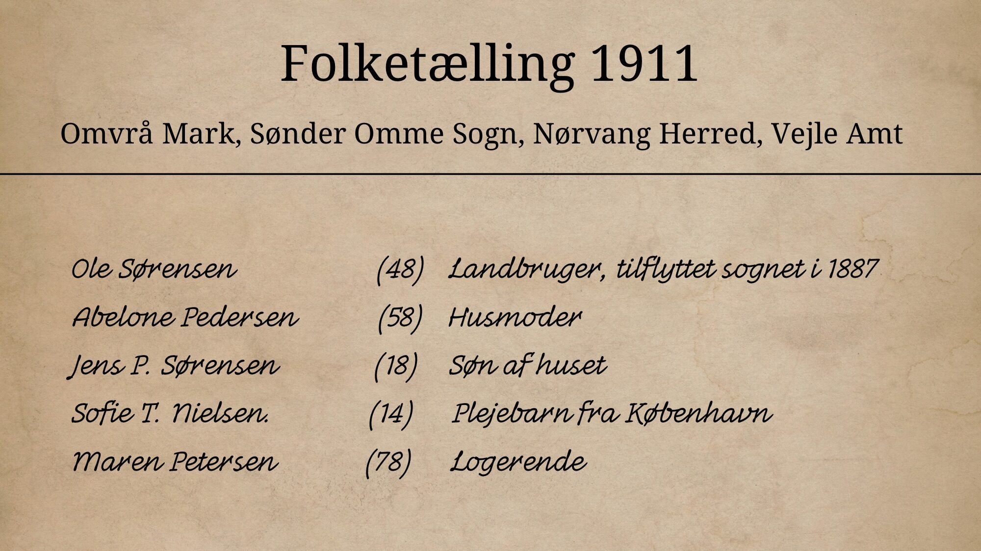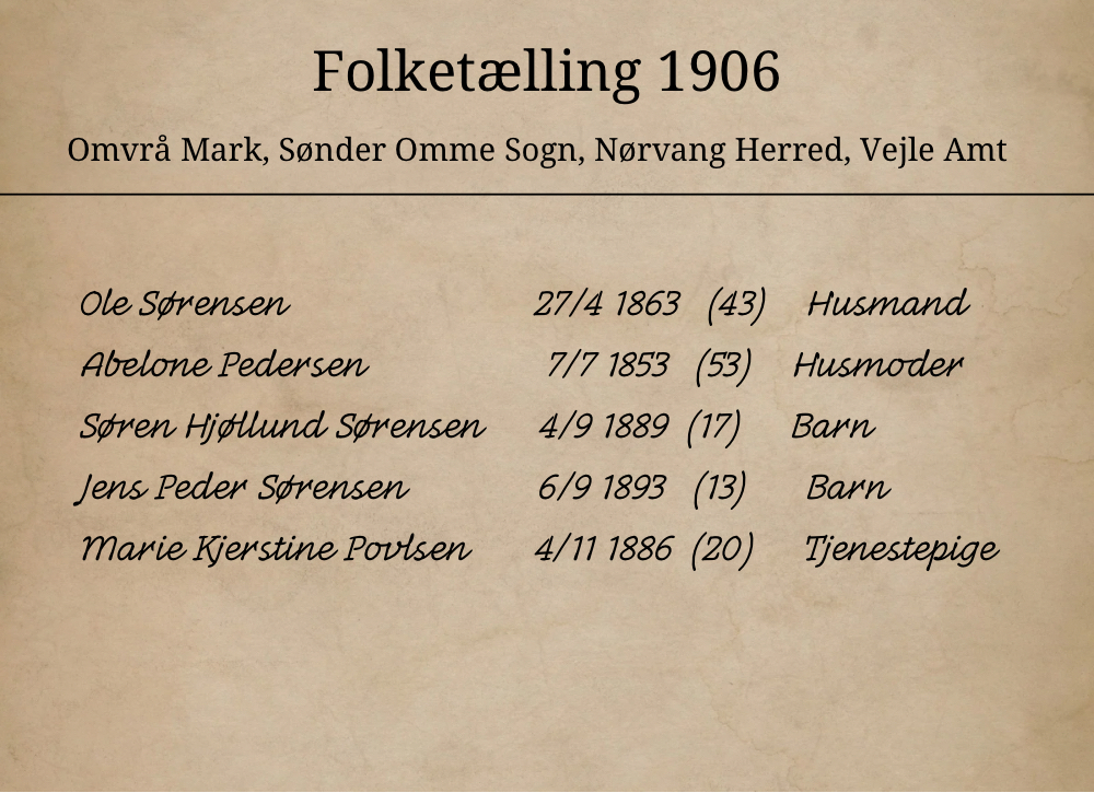 - 1906 – Folketælling, Sønder Omme, Nørvang Herred, Vejle Amt